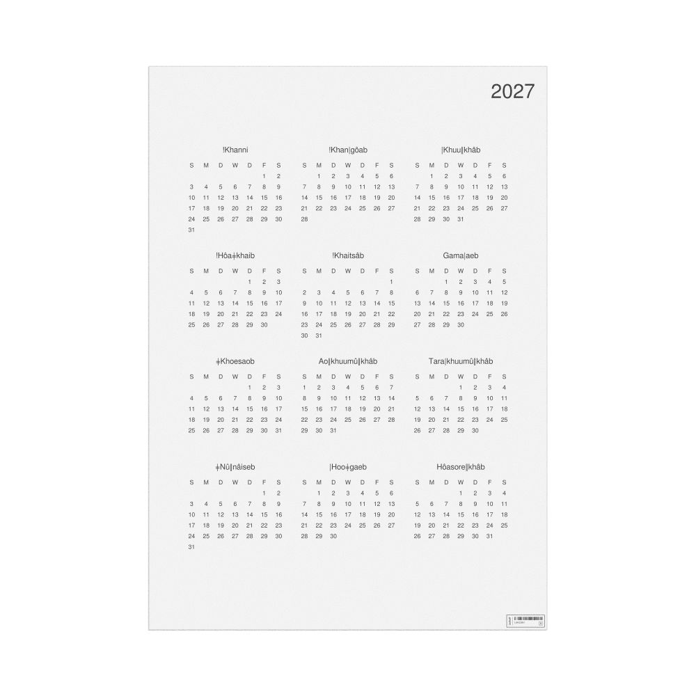 Leskoff 2027 Wall Calendar, Khoekhoe-Labeled, Sunday-Start Layout, Poster / Wall Print, 23.4 x 33.1 in (59.4 x 84.1 cm), image 1 of 1