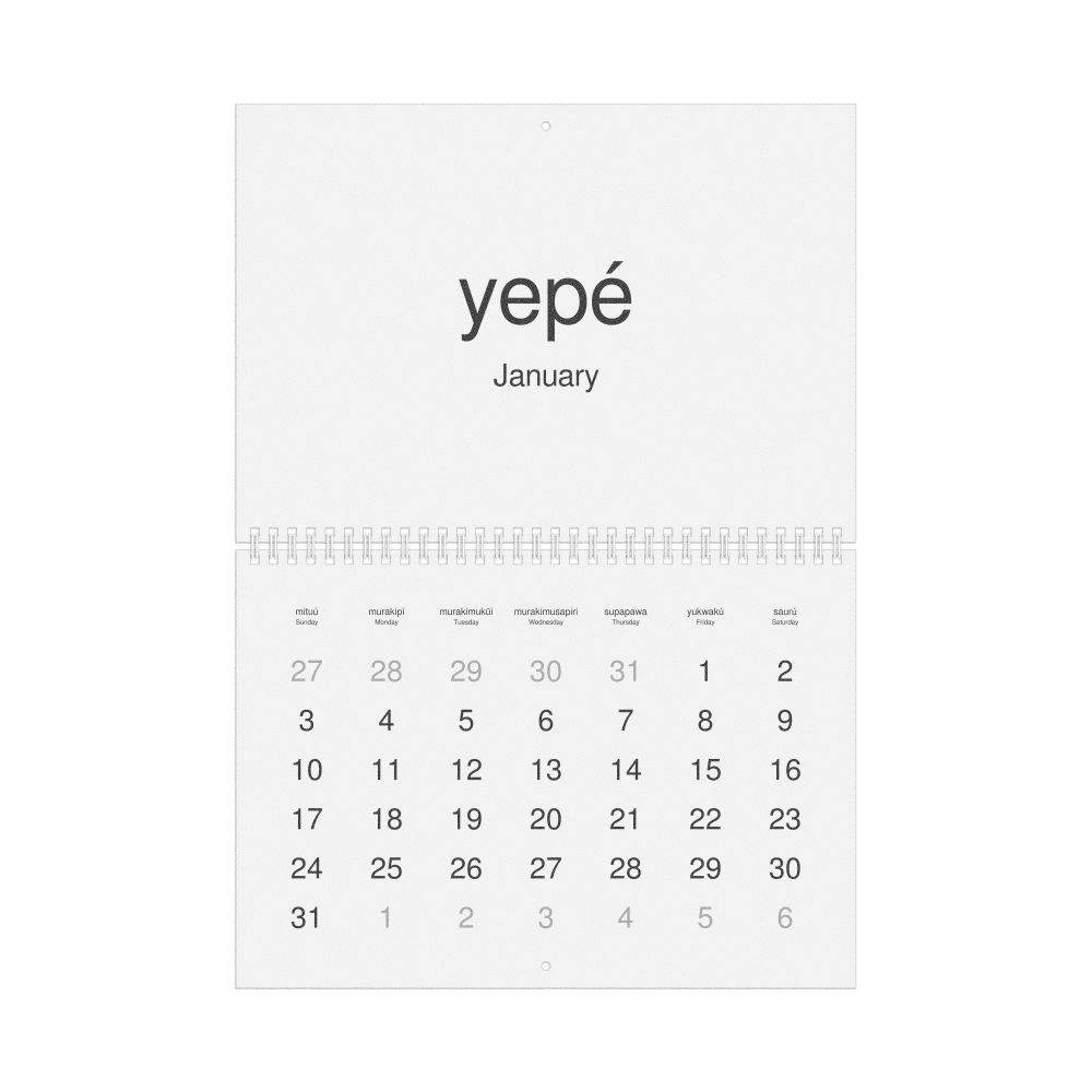 2026 Wall Calendar, Nheengatu-Labeled, Sunday-Start Layout, Wire-Bound, 11.7 x 8.3 in (29.7 x 21.0 cm)