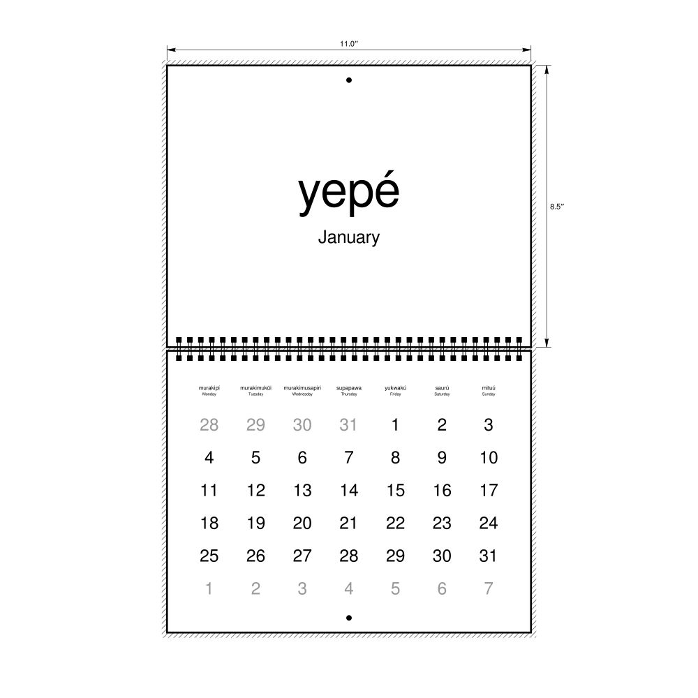 2026 Wall Calendar, Nheengatu/English-Labeled, Sunday-Start Layout, Wire-Bound, 11 x 8.5 in (27.9 x 21.6 cm)