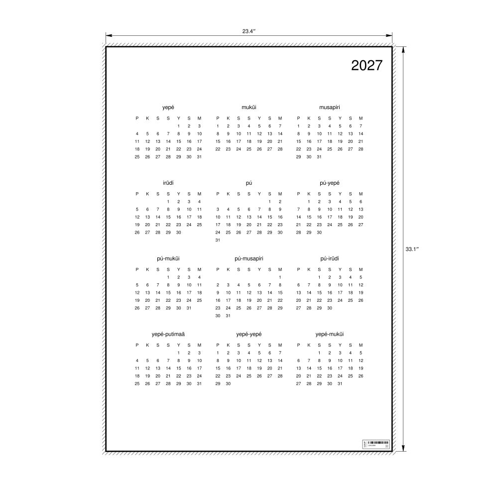 - Nheengatu heritage speakers and cultural connectors - For individuals seeking to maintain a connection to their history, ancestral roots, or the culture associated with the Nheengatu language, the calendar serves as a daily cultural marker. Use it in your home, office, library, or museum as a link to linguistic and cultural identity that integrates Nheengatu into your everyday life. Familiar language script and naming conventions may also provide a sense of home in a foreign environment.