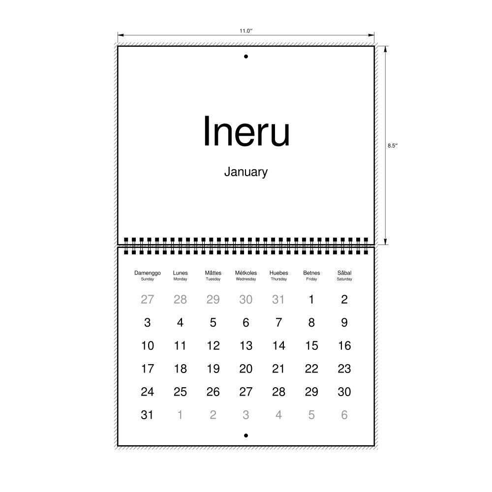 2027 Wall CalendarChamorro/English-Labeled, Sunday-Start Layout, Wire-Bound, 11 x 8.5 in (27.9 x 21.6 cm)