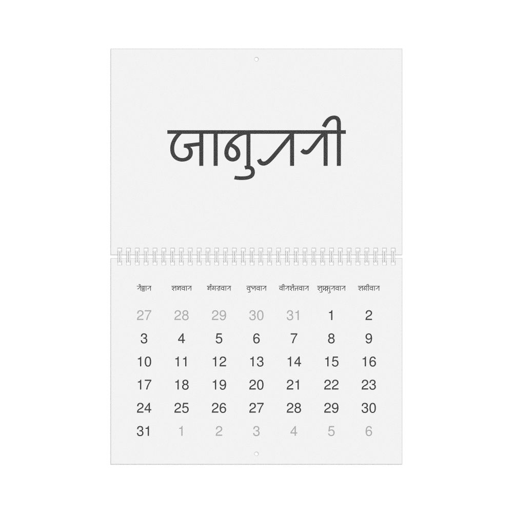 - Linguistics enthusiasts and polyglots - For "language geeks" interested in comparative linguistics or the mechanics of different languages and who value the aesthetic differences in scripts, orthography, and typography of different languages, the Sylheti calendar serves as an object of intellectual interest. You can collect calendars for various languages to compare their linguistic roots (e.g., comparing Romance languages vs. Slavic languages). Leskoff's calendars are characterized by specific typographic choices that highlight the orthography and script unique to the target language. Think correct usage of diacritics, characters, and directional writing (left-to-right vs. right-to-left). The minimalist design focuses on legibility and aesthetic appeal of the script itself.