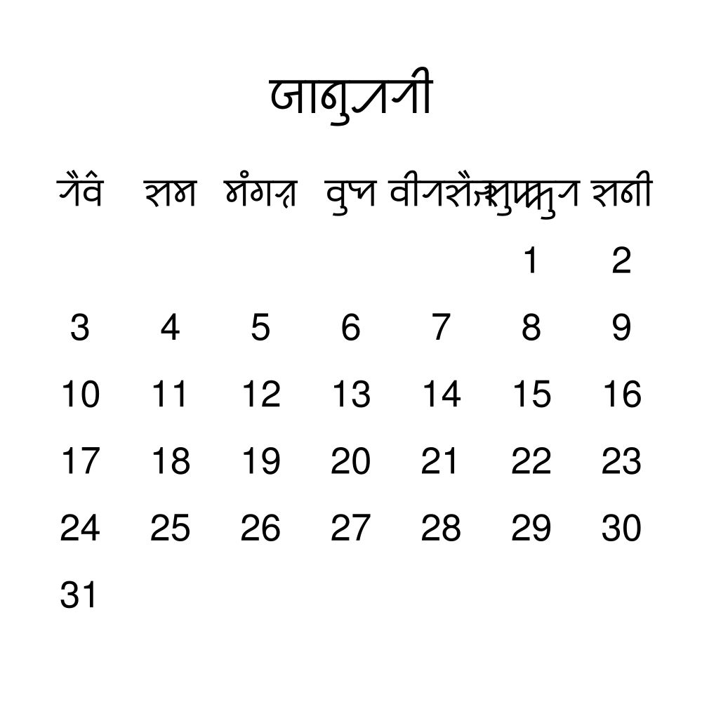 - Linguistics enthusiasts and polyglots - For "language geeks" interested in comparative linguistics or the mechanics of different languages and who value the aesthetic differences in scripts, orthography, and typography of different languages, the Sylheti calendar serves as an object of intellectual interest. You can collect calendars for various languages to compare their linguistic roots (e.g., comparing Romance languages vs. Slavic languages). Leskoff's calendars are characterized by specific typographic choices that highlight the orthography and script unique to the target language. Think correct usage of diacritics, characters, and directional writing (left-to-right vs. right-to-left). The minimalist design focuses on legibility and aesthetic appeal of the script itself.