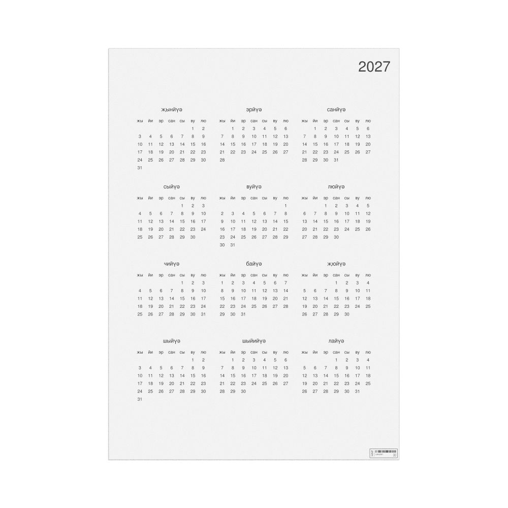 A 2027 wall calendar in Dungan. The calendar uses the Sunday-start week format (common in the US and Canada).