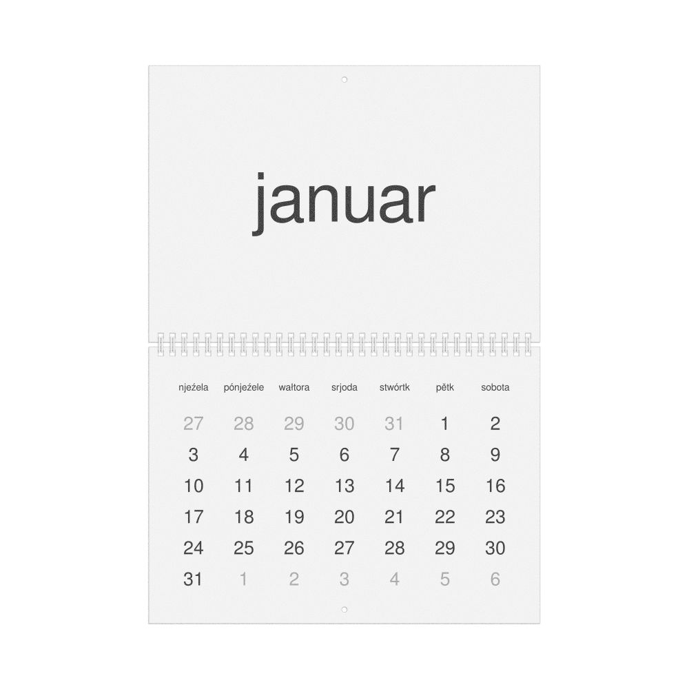 • Linguistics enthusiasts and polyglots - For "language geeks" interested in comparative linguistics or the mechanics of different languages and who value the aesthetic differences in scripts, orthography, and typography of different languages, the Lower Sorbian calendar serves as an object of intellectual interest. You can collect calendars for various languages to compare their linguistic roots (e.g., comparing Romance languages vs. Slavic languages). Leskoff's calendars are characterized by specific typographic choices that highlight the orthography and script unique to the target language. Think correct usage of diacritics, characters, and directional writing (left-to-right vs. right-to-left). The minimalist design focuses on legibility and aesthetic appeal of the script itself.