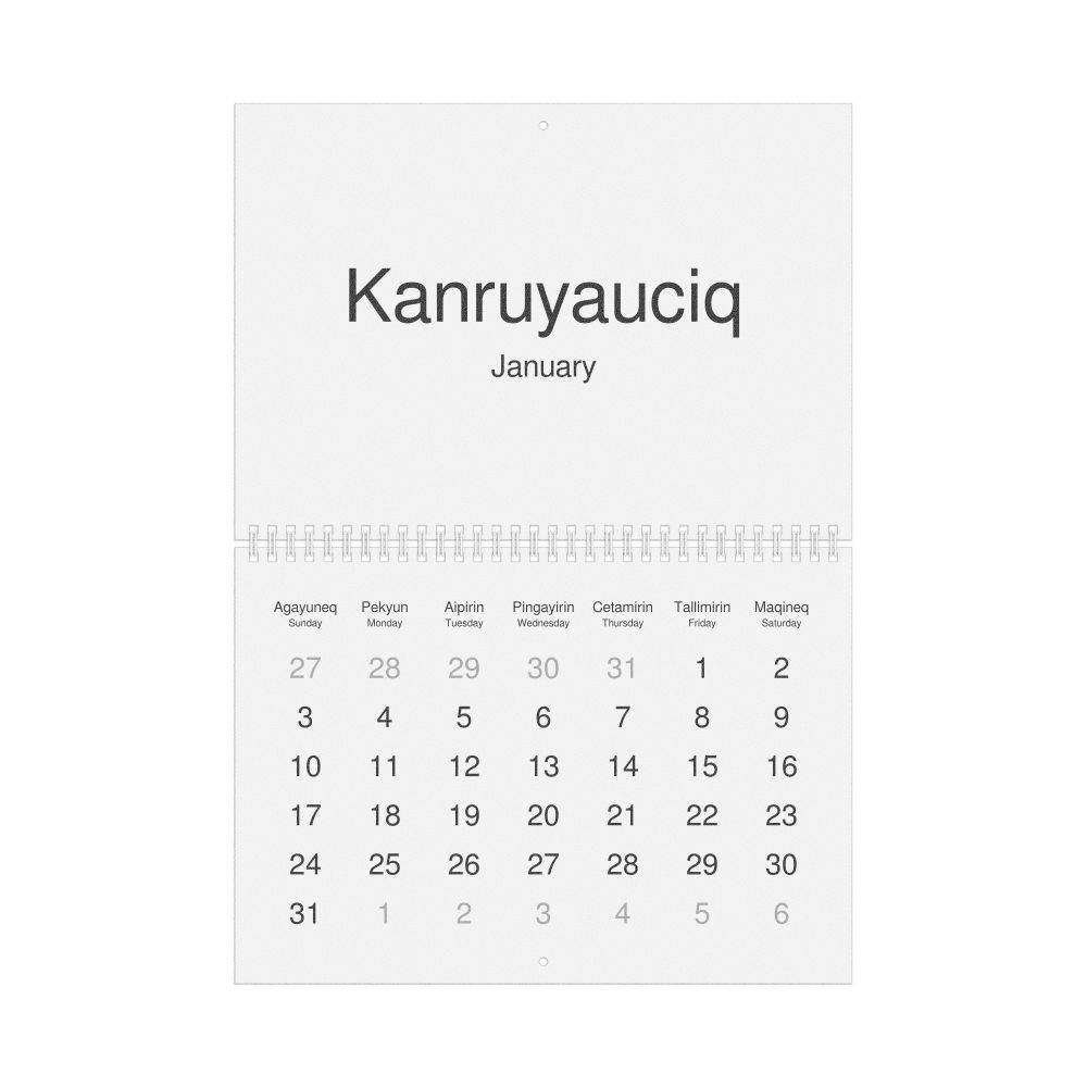 2027 Wall Calendar, Yup'ik-Labeled, Monday-Start Layout, Wire-Bound, 11.7 x 8.3 in (29.7 x 21.0 cm)