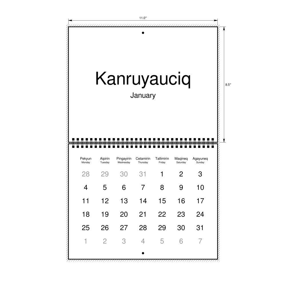 2027 Wall CalendarYup'ik/English-Labeled, Monday-Start Layout, Wire-Bound, 11 x 8.5 in (27.9 x 21.6 cm)