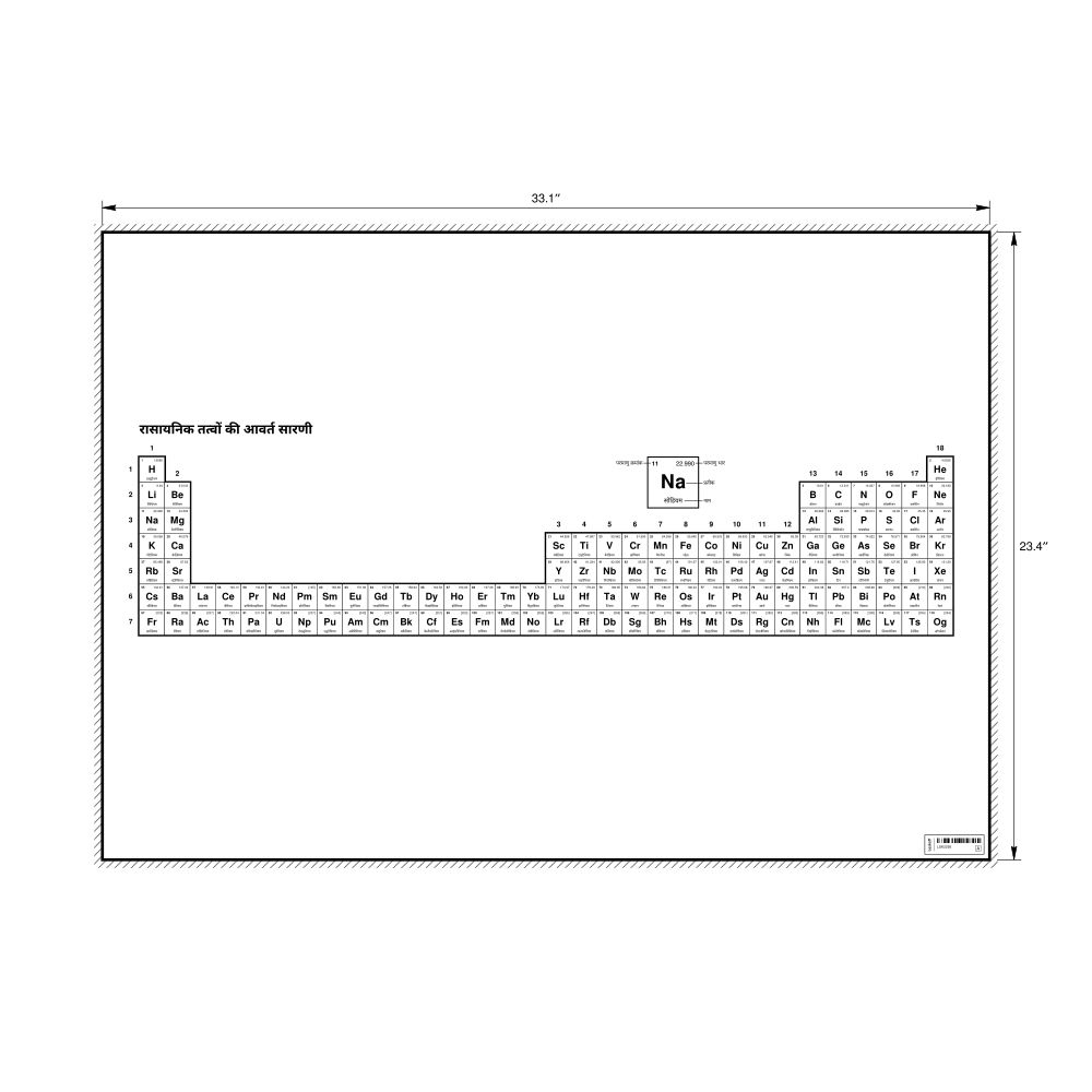 Periodic Table Chart33.1 x 23.4 in (84.1 x 59.4 cm, Poster / Wall Chart), 32-Column Layout, Hindi-Labeled