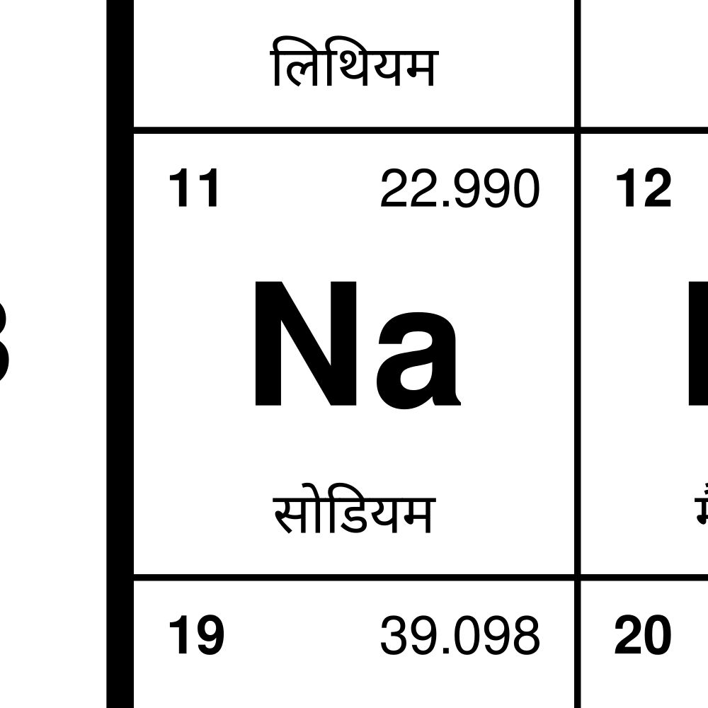 A Hindi periodic table of the elements.