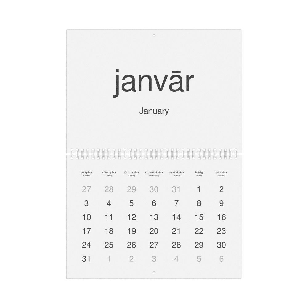 2027 Wall Calendar, Livonian-Labeled, Monday-Start Layout, Poster / Wall Print, 23.4 x 33.1 in (59.4 x 84.1 cm)