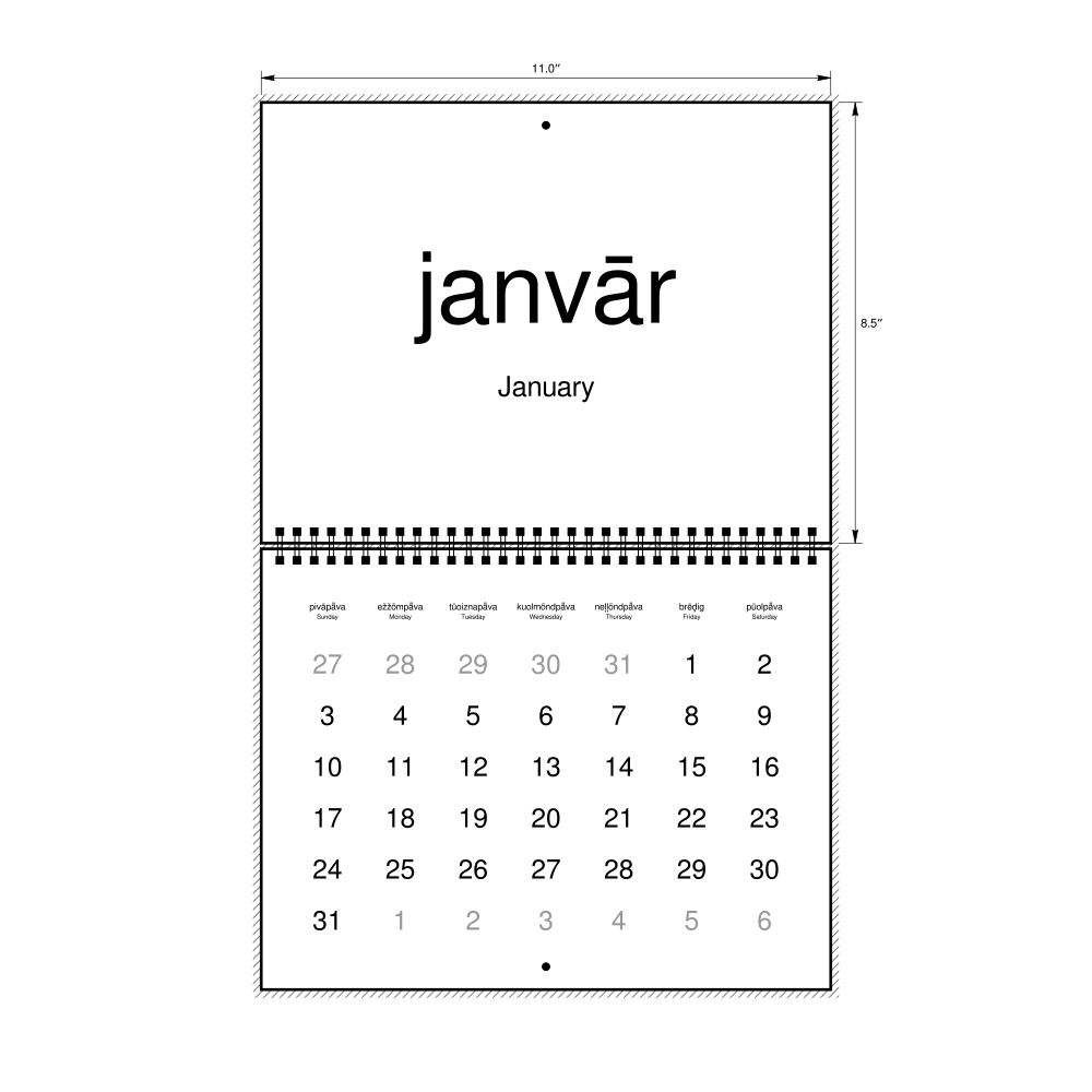 2027 Wall CalendarLivonian/English-Labeled, Sunday-Start Layout, Wire-Bound, 11 x 8.5 in (27.9 x 21.6 cm)