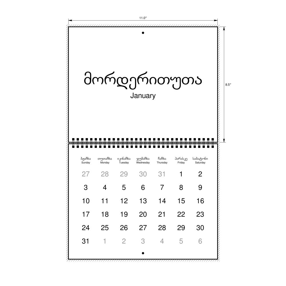 2027 Wall CalendarLaz/English-Labeled, Sunday-Start Layout, Wire-Bound, 11 x 8.5 in (27.9 x 21.6 cm)