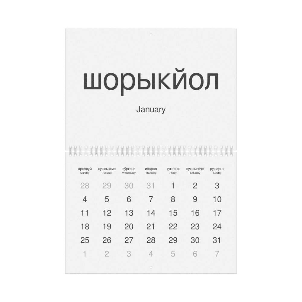 2027 Wall Calendar, Meadow Mari/English-Labeled, Sunday-Start Layout, Wire-Bound, 11.7 x 8.3 in (29.7 x 21.0 cm)