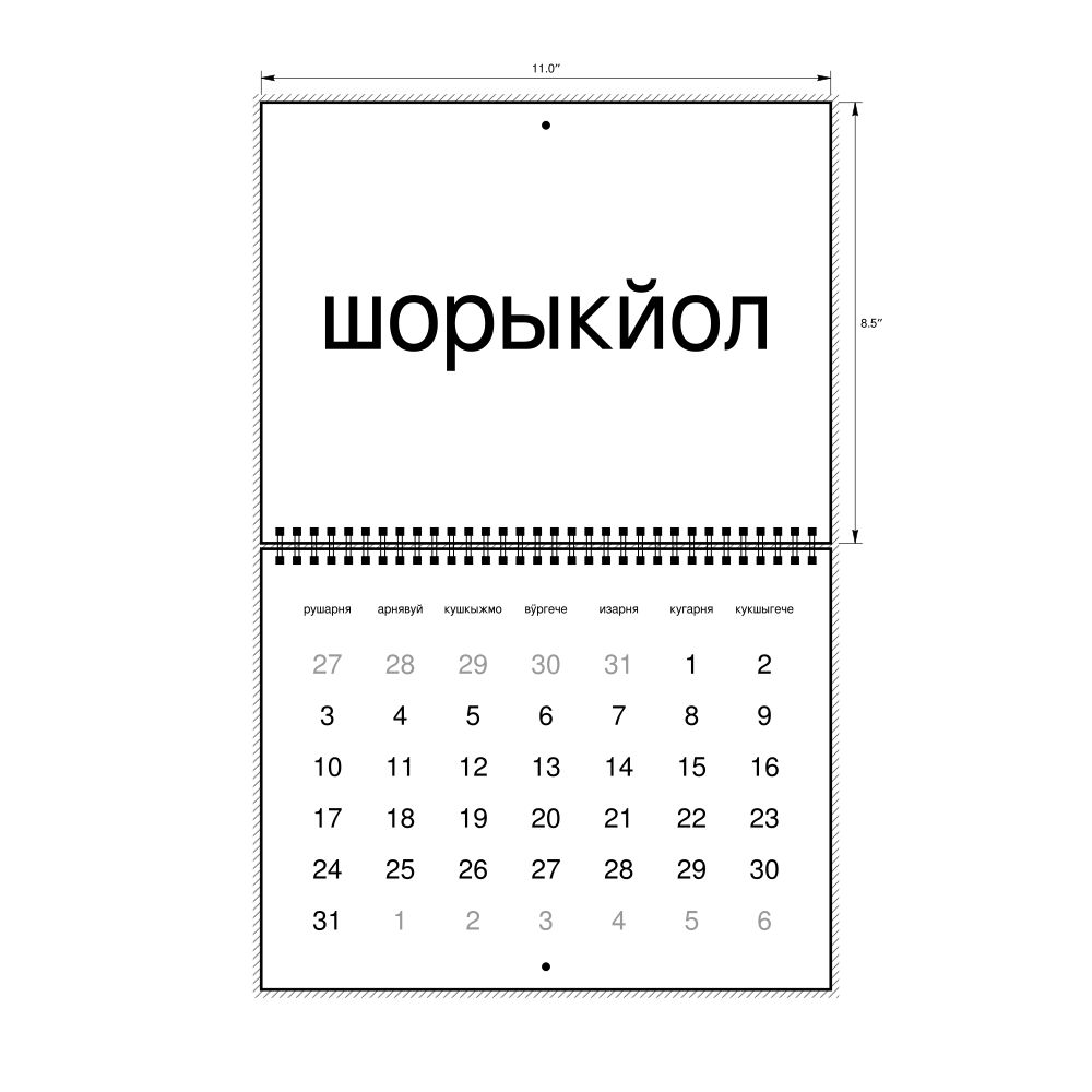 • Meadow Mari language learners and students - For individuals currently studying Meadow Mari, this calendar acts as a tool for passive learning and vocabulary reinforcement. It integrates essential Meadow Mari vocabulary into a daily visual environment and promotes retention through passive immersion and spaced repetition. Place it above a desk or study area to support immersion techniques.