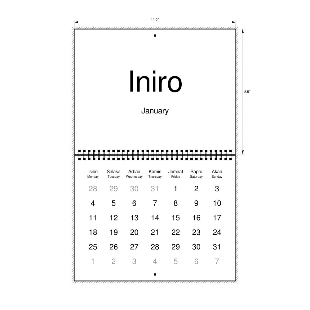 2027 Wall Calendar, Maranao/English-Labeled, Sunday-Start Layout, Wire-Bound, 11 x 8.5 in (27.9 x 21.6 cm)