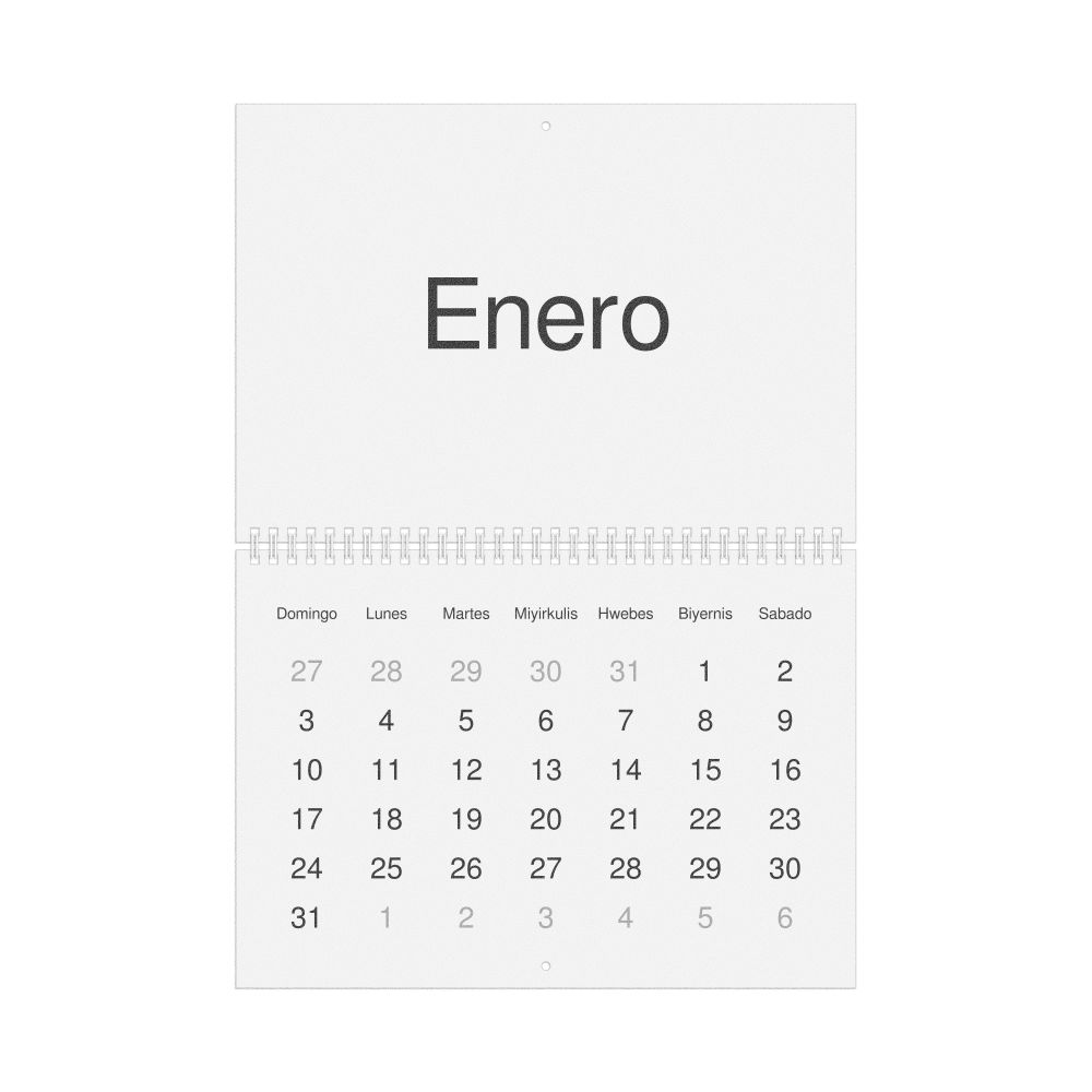 • Linguistics enthusiasts and polyglots - For "language geeks" interested in comparative linguistics or the mechanics of different languages and who value the aesthetic differences in scripts, orthography, and typography of different languages, the Masbateño calendar serves as an object of intellectual interest. You can collect calendars for various languages to compare their linguistic roots (e.g., comparing Romance languages vs. Slavic languages). Leskoff's calendars are characterized by specific typographic choices that highlight the orthography and script unique to the target language. Think correct usage of diacritics, characters, and directional writing (left-to-right vs. right-to-left). The minimalist design focuses on legibility and aesthetic appeal of the script itself.
