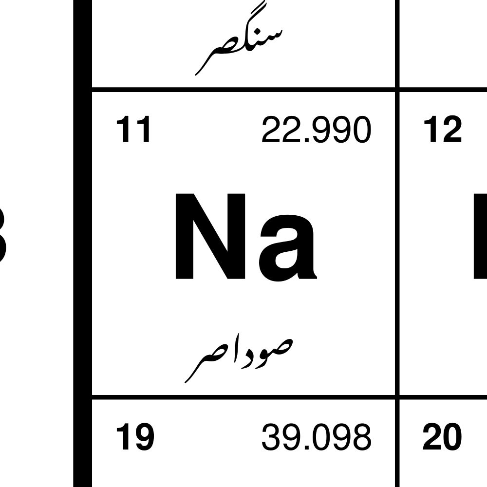 An Urdu periodic table of the elements.