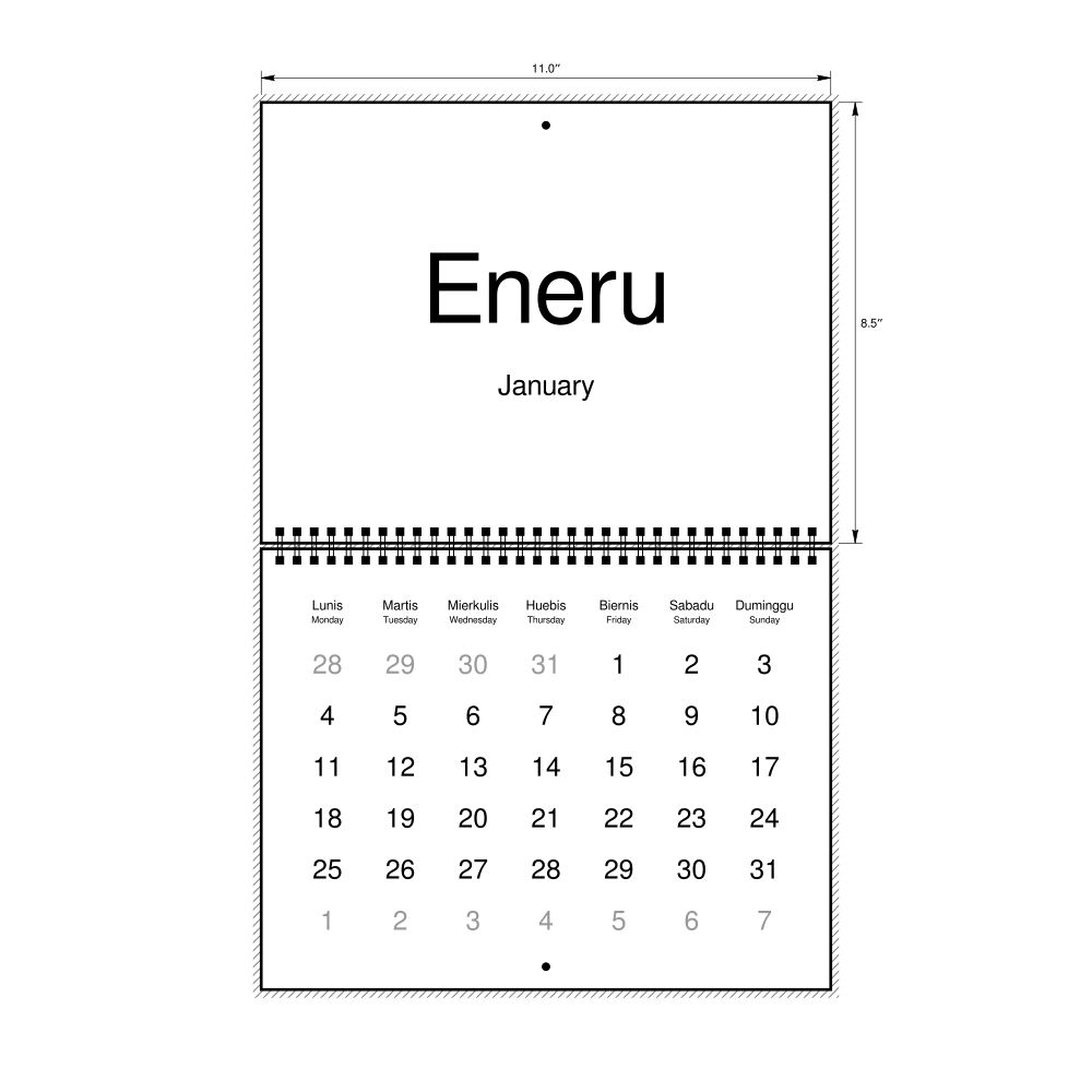 2027 Wall CalendarKapampangan/English-Labeled, Monday-Start Layout, Wire-Bound, 11 x 8.5 in (27.9 x 21.6 cm)