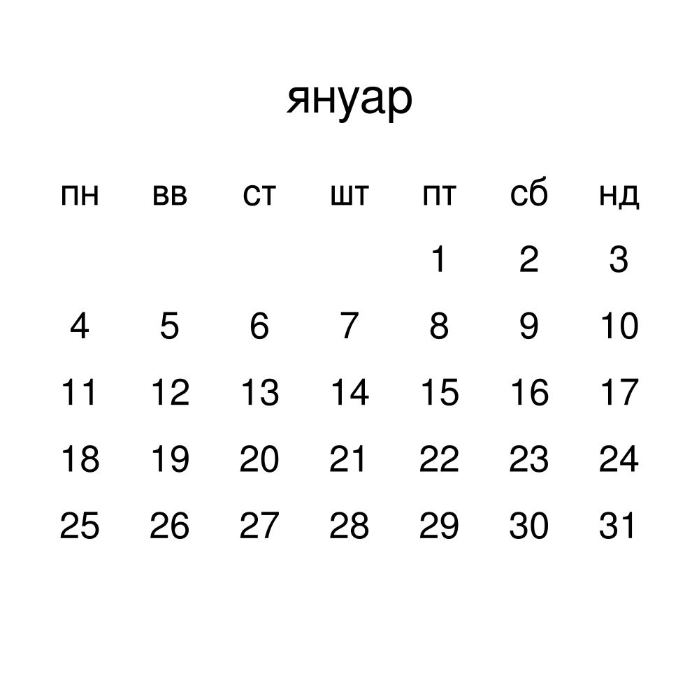 - Pannonian Rusyn heritage speakers and cultural connectors - For individuals seeking to maintain a connection to their history, ancestral roots, or the culture associated with the Pannonian Rusyn language, the calendar serves as a daily cultural marker. Use it in your home, office, library, or museum as a link to linguistic and cultural identity that integrates Pannonian Rusyn into your everyday life. Familiar language script and naming conventions may also provide a sense of home in a foreign environment.