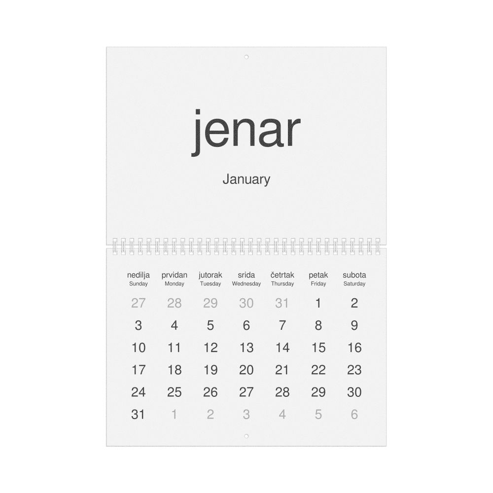 2026 Wall Calendar, Slavomolisano-Labeled, Sunday-Start Layout, Wire-Bound, 11.7 x 8.3 in (29.7 x 21.0 cm)