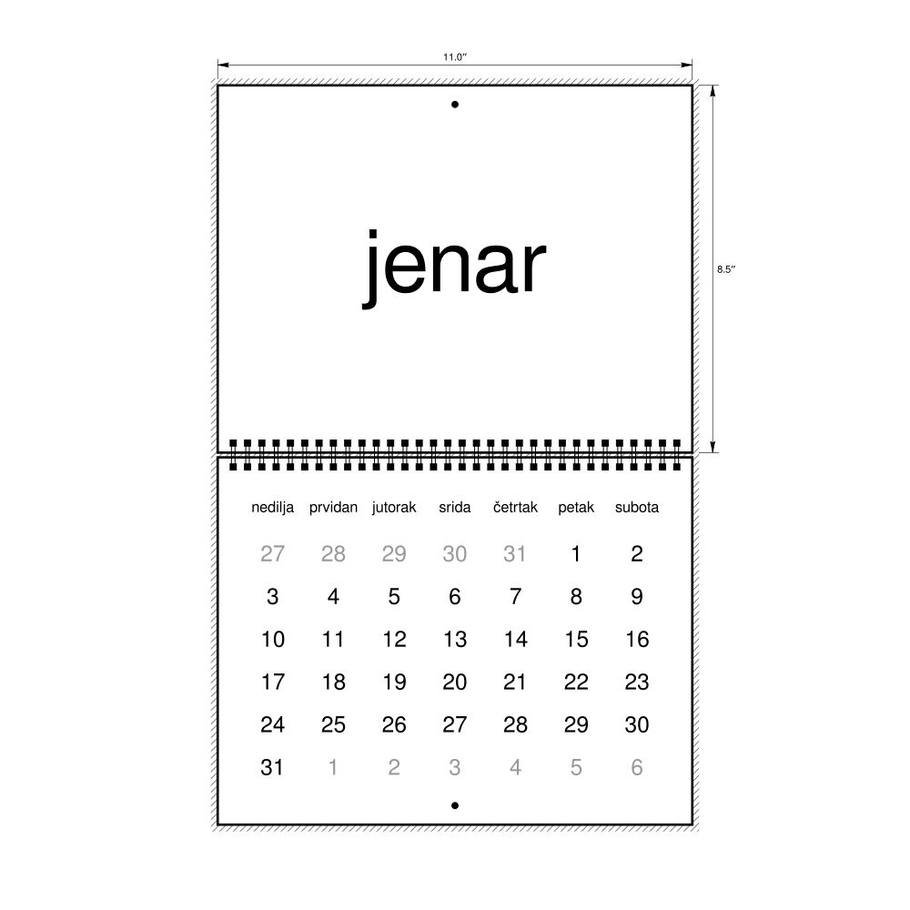 2027 Wall Calendar, Slavomolisano-Labeled, Sunday-Start Layout, Wire-Bound, 11 x 8.5 in (27.9 x 21.6 cm)