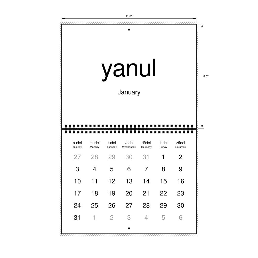 2027 Wall Calendar, Volapük-Labeled, Sunday-Start Layout, Wire-Bound, 11 x 8.5 in (27.9 x 21.6 cm)