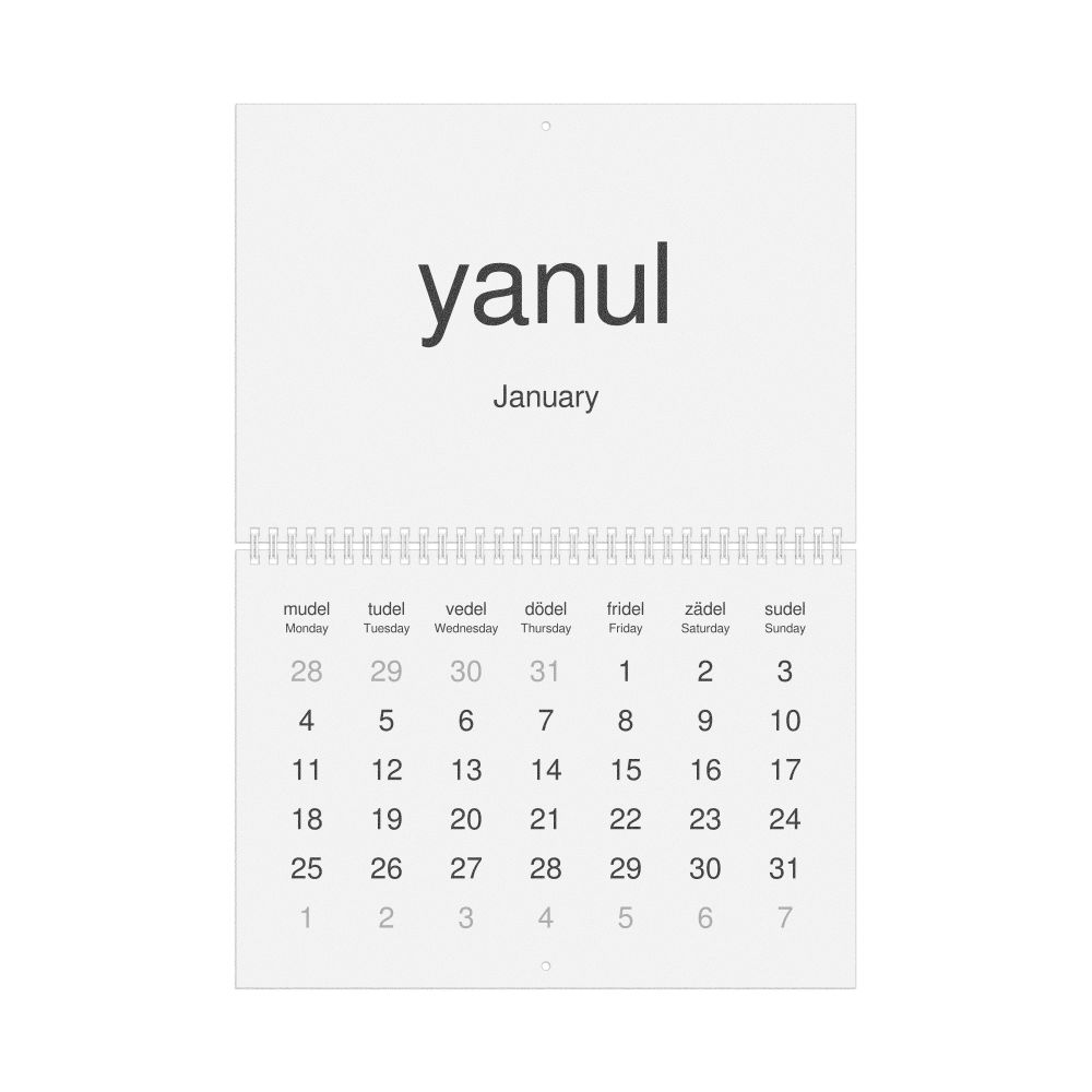 2027 Wall Calendar, Volapük-Labeled, Monday-Start Layout, Wire-Bound, 11.7 x 8.3 in (29.7 x 21.0 cm)