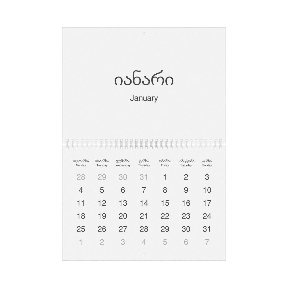 2026 Wall Calendar, Mingrelian-Labeled, Monday-Start Layout, Wire-Bound, 11.7 x 8.3 in (29.7 x 21.0 cm)
