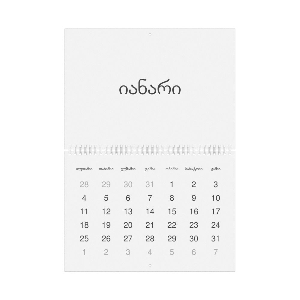 • Linguistics enthusiasts and polyglots - For "language geeks" interested in comparative linguistics or the mechanics of different languages and who value the aesthetic differences in scripts, orthography, and typography of different languages, the Mingrelian calendar serves as an object of intellectual interest. You can collect calendars for various languages to compare their linguistic roots (e.g., comparing Romance languages vs. Slavic languages). Leskoff's calendars are characterized by specific typographic choices that highlight the orthography and script unique to the target language. Think correct usage of diacritics, characters, and directional writing (left-to-right vs. right-to-left). The minimalist design focuses on legibility and aesthetic appeal of the script itself.