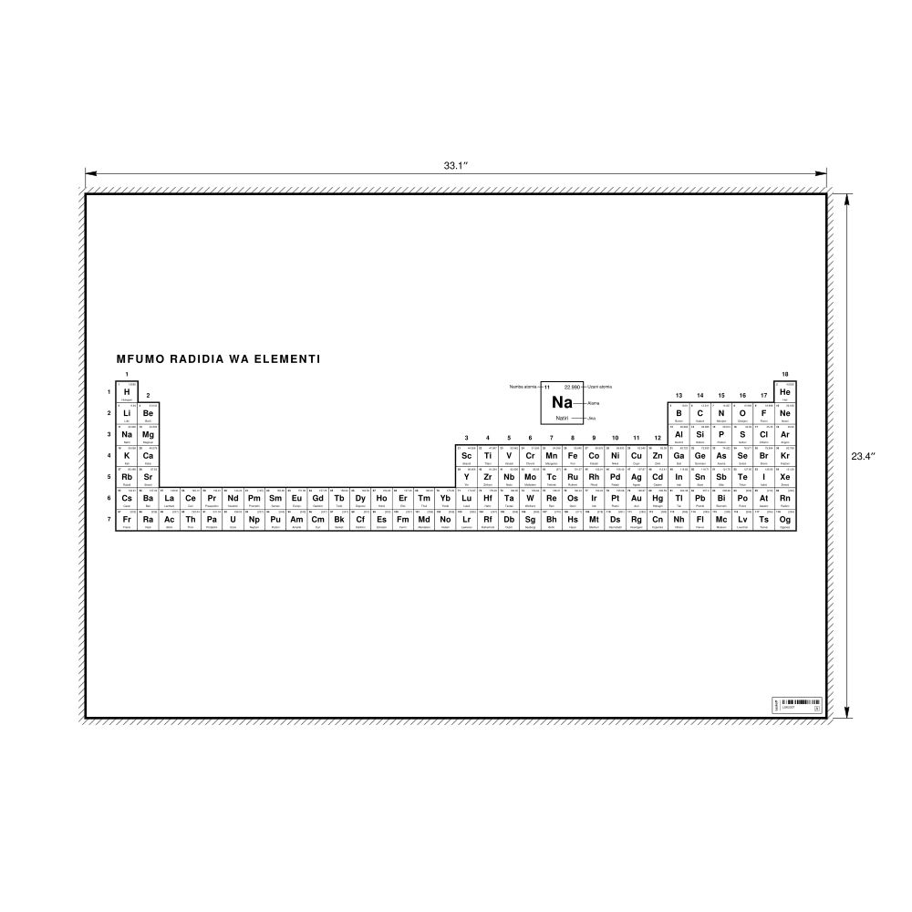 Periodic Table Chart33.1 x 23.4 in (84.1 x 59.4 cm, Poster / Wall Chart), 32-Column Layout, Swahili-Labeled
