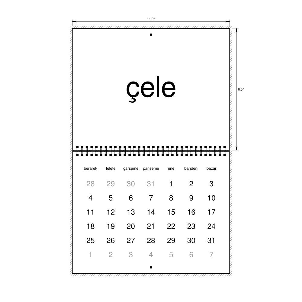 • Linguistics enthusiasts and polyglots - For "language geeks" interested in comparative linguistics or the mechanics of different languages and who value the aesthetic differences in scripts, orthography, and typography of different languages, the Zaza calendar serves as an object of intellectual interest. You can collect calendars for various languages to compare their linguistic roots (e.g., comparing Romance languages vs. Slavic languages). Leskoff's calendars are characterized by specific typographic choices that highlight the orthography and script unique to the target language. Think correct usage of diacritics, characters, and directional writing (left-to-right vs. right-to-left). The minimalist design focuses on legibility and aesthetic appeal of the script itself.