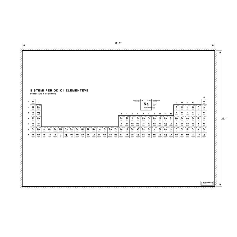 Periodic Table Chart33.1 x 23.4 in (84.1 x 59.4 cm, Poster / Wall Chart), 32-Column Layout, Albanian/English-Labeled