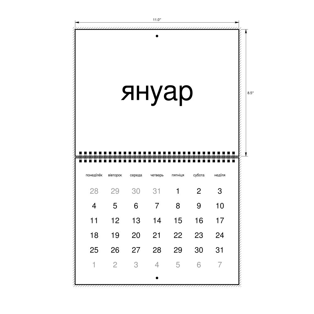 - Linguistics enthusiasts and polyglots - For "language geeks" interested in comparative linguistics or the mechanics of different languages and who value the aesthetic differences in scripts, orthography, and typography of different languages, the Rusyn calendar serves as an object of intellectual interest. You can collect calendars for various languages to compare their linguistic roots (e.g., comparing Romance languages vs. Slavic languages). Leskoff's calendars are characterized by specific typographic choices that highlight the orthography and script unique to the target language. Think correct usage of diacritics, characters, and directional writing (left-to-right vs. right-to-left). The minimalist design focuses on legibility and aesthetic appeal of the script itself.