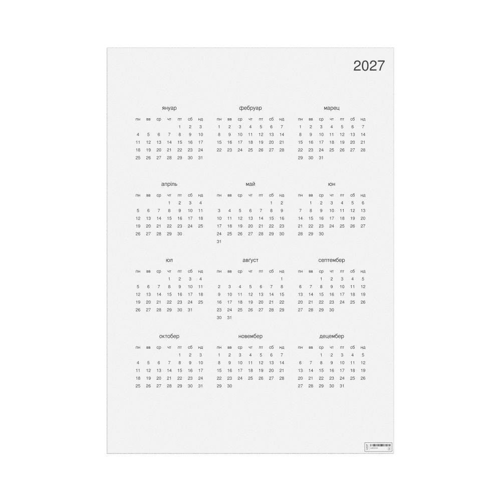 - Linguistics enthusiasts and polyglots - For "language geeks" interested in comparative linguistics or the mechanics of different languages and who value the aesthetic differences in scripts, orthography, and typography of different languages, the Rusyn calendar serves as an object of intellectual interest. You can collect calendars for various languages to compare their linguistic roots (e.g., comparing Romance languages vs. Slavic languages). Leskoff's calendars are characterized by specific typographic choices that highlight the orthography and script unique to the target language. Think correct usage of diacritics, characters, and directional writing (left-to-right vs. right-to-left). The minimalist design focuses on legibility and aesthetic appeal of the script itself.