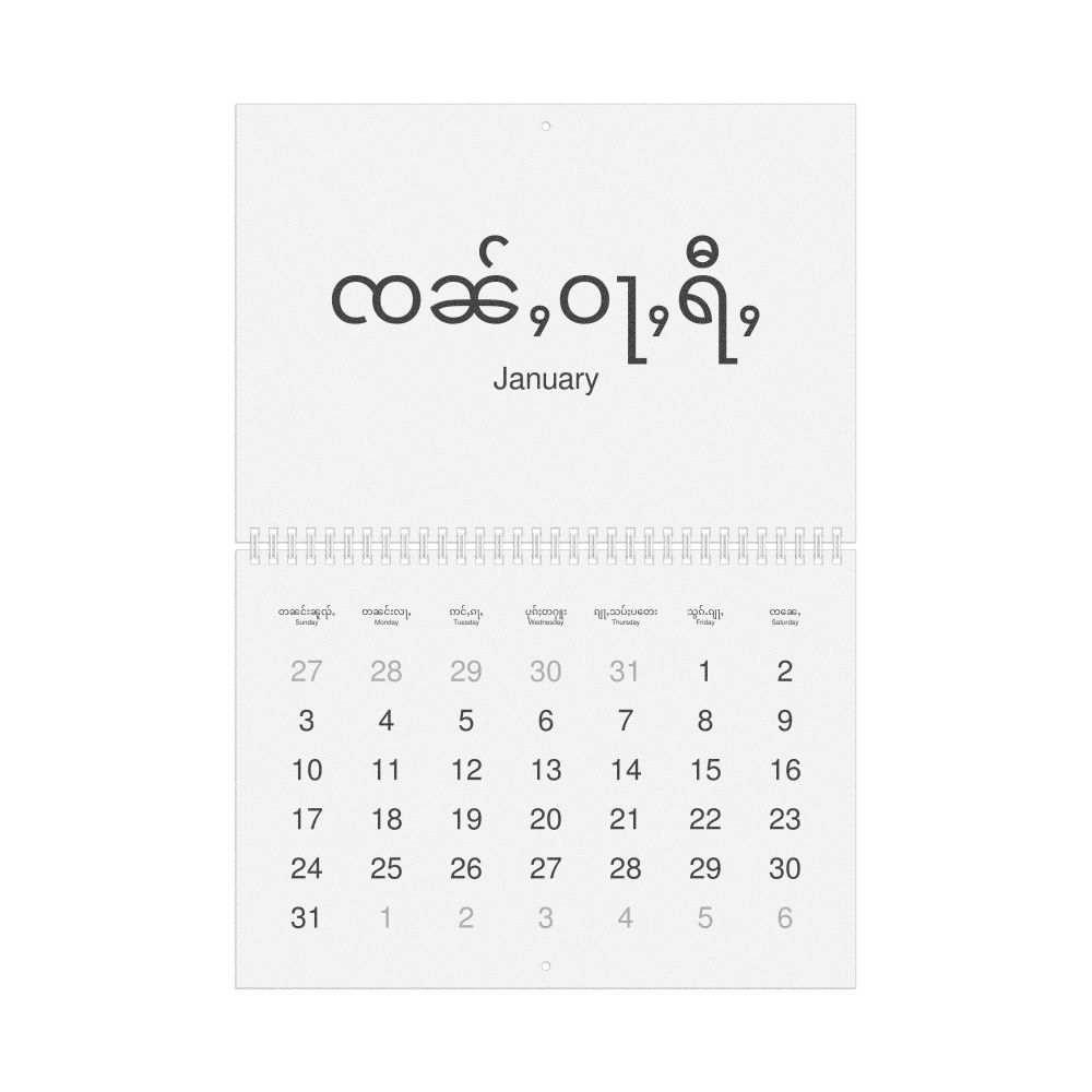 2026 Wall Calendar, Shan/English-Labeled, Monday-Start Layout, Wire-Bound, 11.7 x 8.3 in (29.7 x 21.0 cm)