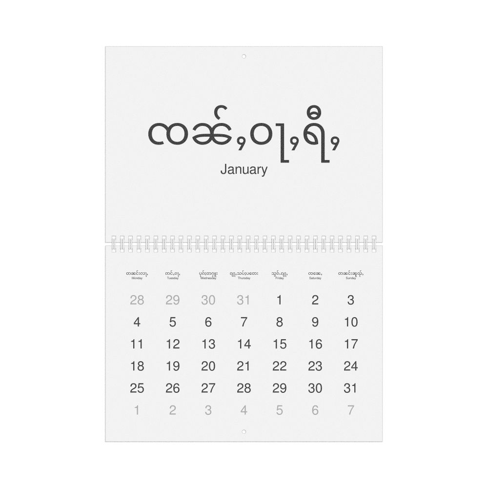 2026 Wall Calendar, Shan-Labeled, Monday-Start Layout, Poster / Wall Print, 23.4 x 33.1 in (59.4 x 84.1 cm)
