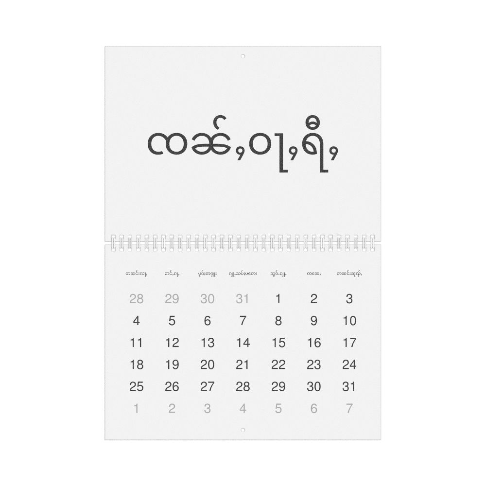 - Linguistics enthusiasts and polyglots - For "language geeks" interested in comparative linguistics or the mechanics of different languages and who value the aesthetic differences in scripts, orthography, and typography of different languages, the Shan calendar serves as an object of intellectual interest. You can collect calendars for various languages to compare their linguistic roots (e.g., comparing Romance languages vs. Slavic languages). Leskoff's calendars are characterized by specific typographic choices that highlight the orthography and script unique to the target language. Think correct usage of diacritics, characters, and directional writing (left-to-right vs. right-to-left). The minimalist design focuses on legibility and aesthetic appeal of the script itself.