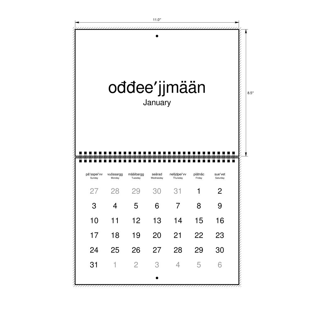 2027 Wall CalendarSkolt Sámi/English-Labeled, Sunday-Start Layout, Wire-Bound, 11 x 8.5 in (27.9 x 21.6 cm)
