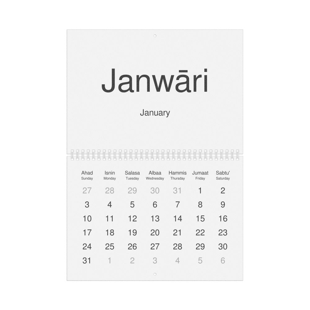 2027 Wall Calendar, Tausug-Labeled, Sunday-Start Layout, Poster / Wall Print, 23.4 x 33.1 in (59.4 x 84.1 cm)