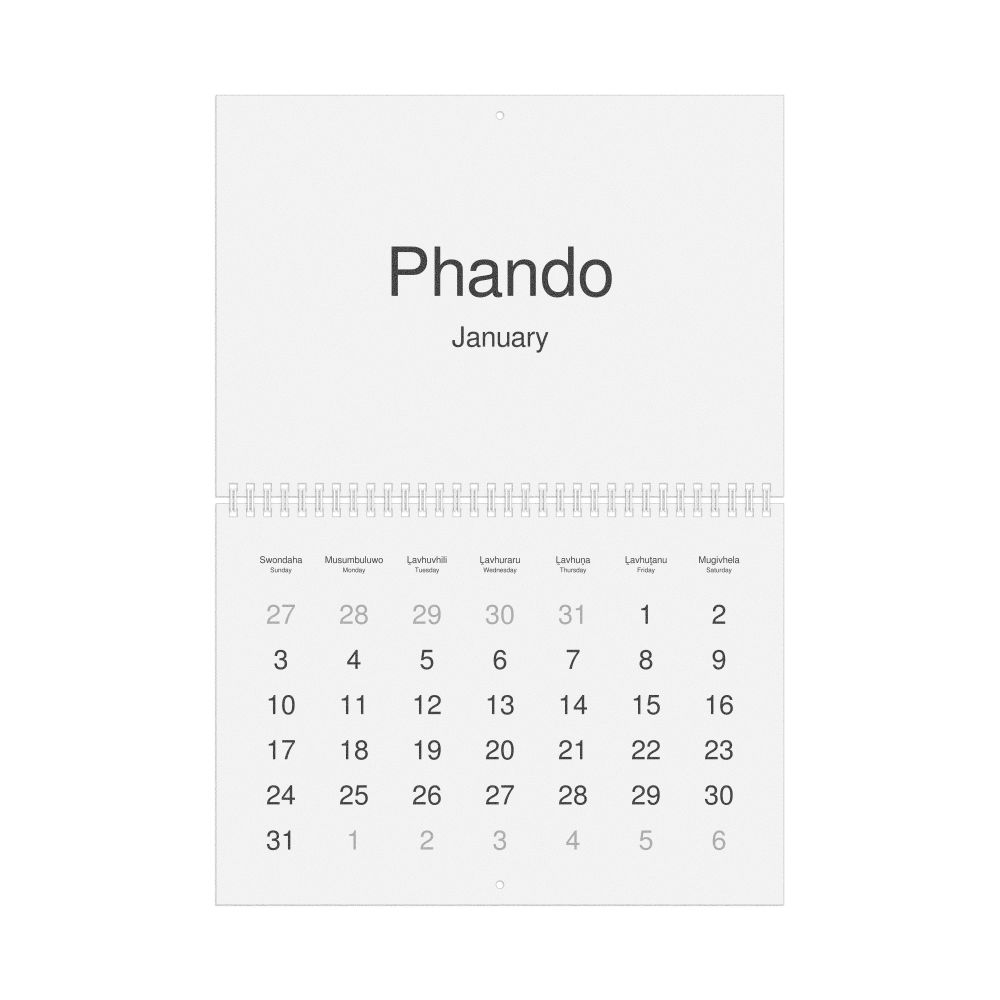 A Venda-language wall calendar (2027, Sunday-start format) with English translations.