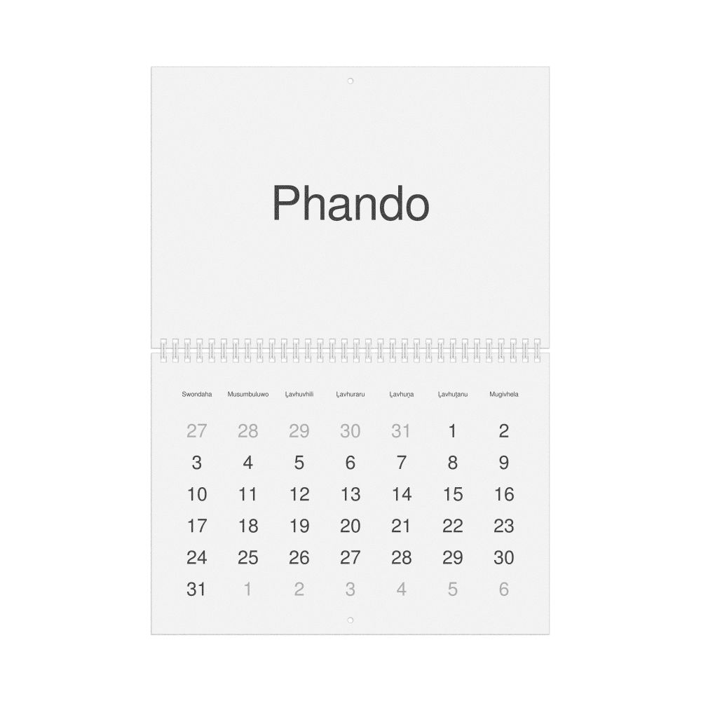 - Venda heritage speakers and cultural connectors - For individuals seeking to maintain a connection to their history, ancestral roots, or the culture associated with the Venda language, the calendar serves as a daily cultural marker. Use it in your home, office, library, or museum as a link to linguistic and cultural identity that integrates Venda into your everyday life. Familiar language script and naming conventions may also provide a sense of home in a foreign environment.