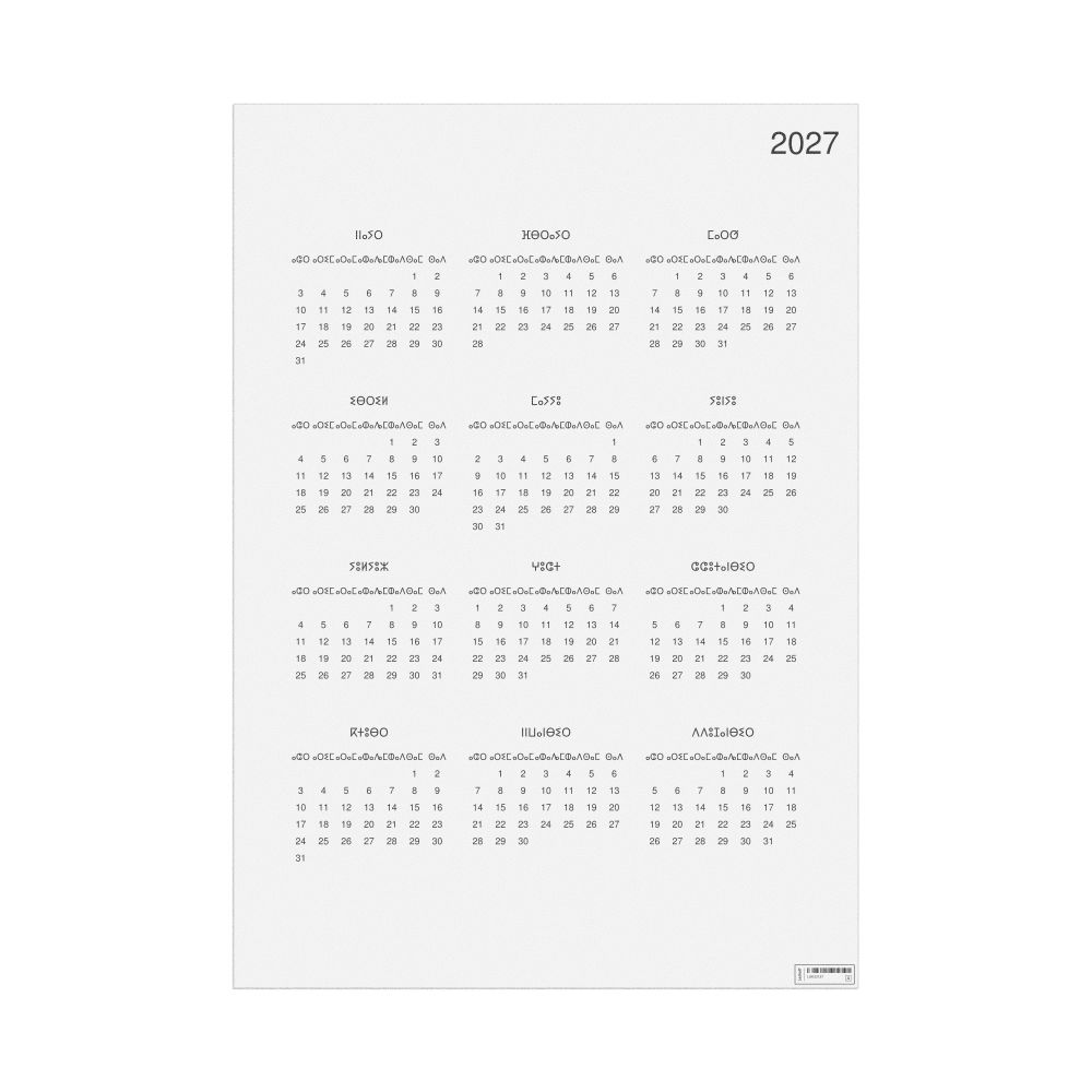 - Linguistics enthusiasts and polyglots - For "language geeks" interested in comparative linguistics or the mechanics of different languages and who value the aesthetic differences in scripts, orthography, and typography of different languages, the Central Atlas Tamazight calendar serves as an object of intellectual interest. You can collect calendars for various languages to compare their linguistic roots (e.g., comparing Romance languages vs. Slavic languages). Leskoff's calendars are characterized by specific typographic choices that highlight the orthography and script unique to the target language. Think correct usage of diacritics, characters, and directional writing (left-to-right vs. right-to-left). The minimalist design focuses on legibility and aesthetic appeal of the script itself.