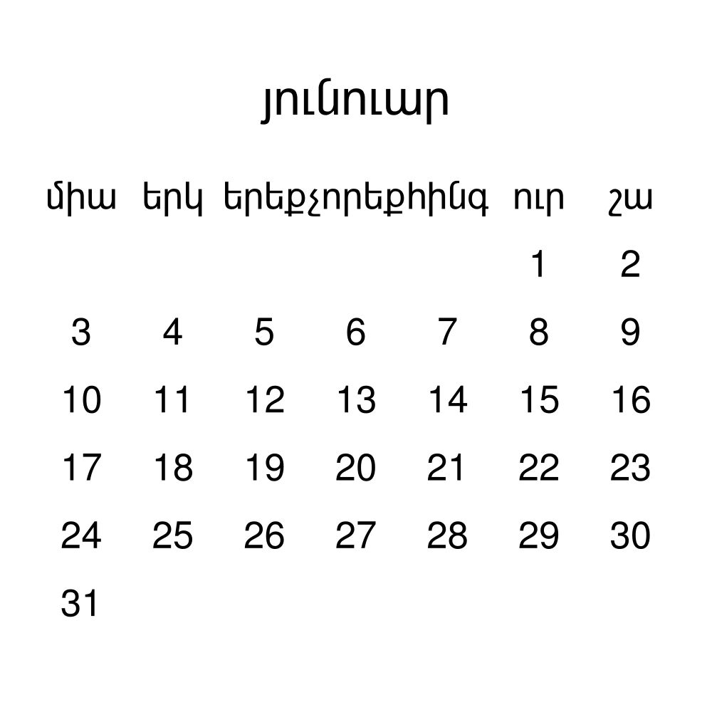 • Gift buyers - Choose this calendar if you are looking for specific, personalized gift ideas for friends or colleagues who have an affinity for history and languages. A niche, thoughtful alternative to generic stationery, this Classical Armenian calendar demonstrates that you understand the recipient's specific interest in the language. Finding relevant gifts for such unique interests can be difficult, so this calendar serves as a unique and thoughtful option.