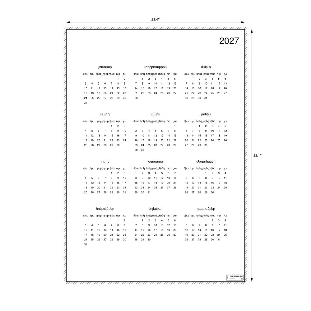 2027 Wall Calendar, Classical Armenian-Labeled, Sunday-Start Layout, Poster / Wall Print, 23.4 x 33.1 in (59.4 x 84.1 cm)