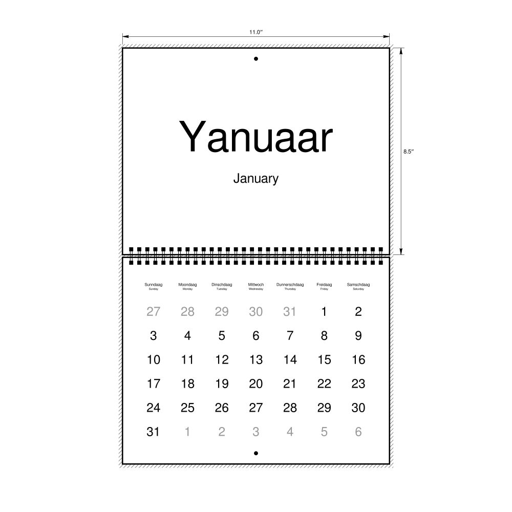 2027 Wall CalendarPennsylvania Dutch/English-Labeled, Sunday-Start Layout, Wire-Bound, 11 x 8.5 in (27.9 x 21.6 cm)