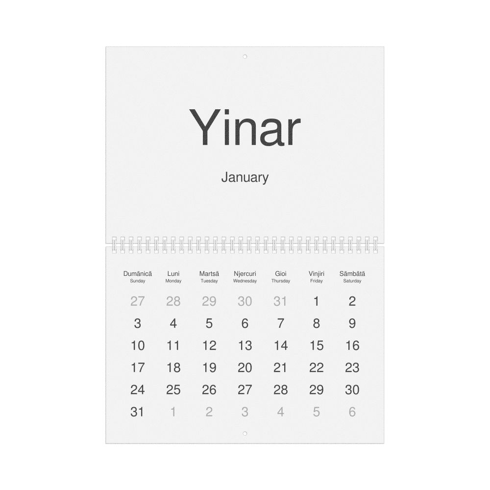2026 Wall Calendar, Aromanian-Labeled, Sunday-Start Layout, Wire-Bound, 11.7 x 8.3 in (29.7 x 21.0 cm)