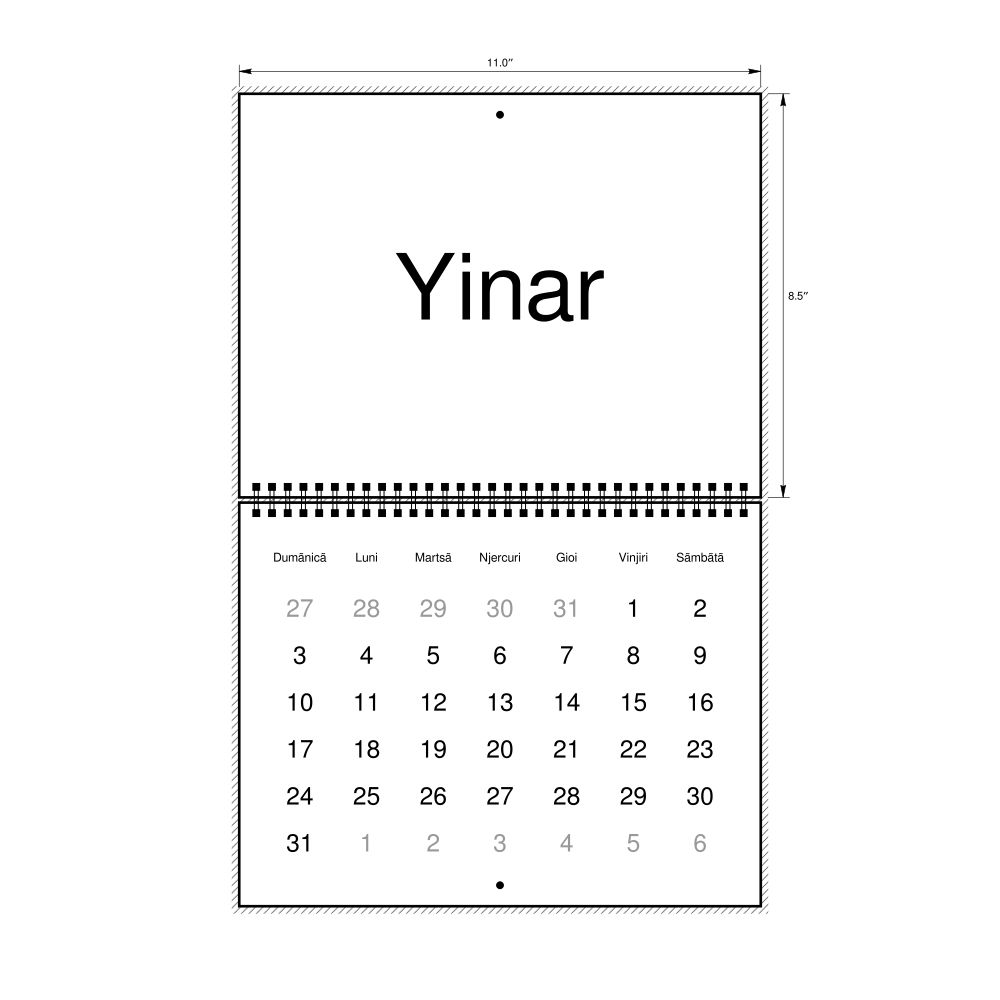 2027 Wall Calendar, Aromanian-Labeled, Sunday-Start Layout, Wire-Bound, 11 x 8.5 in (27.9 x 21.6 cm)