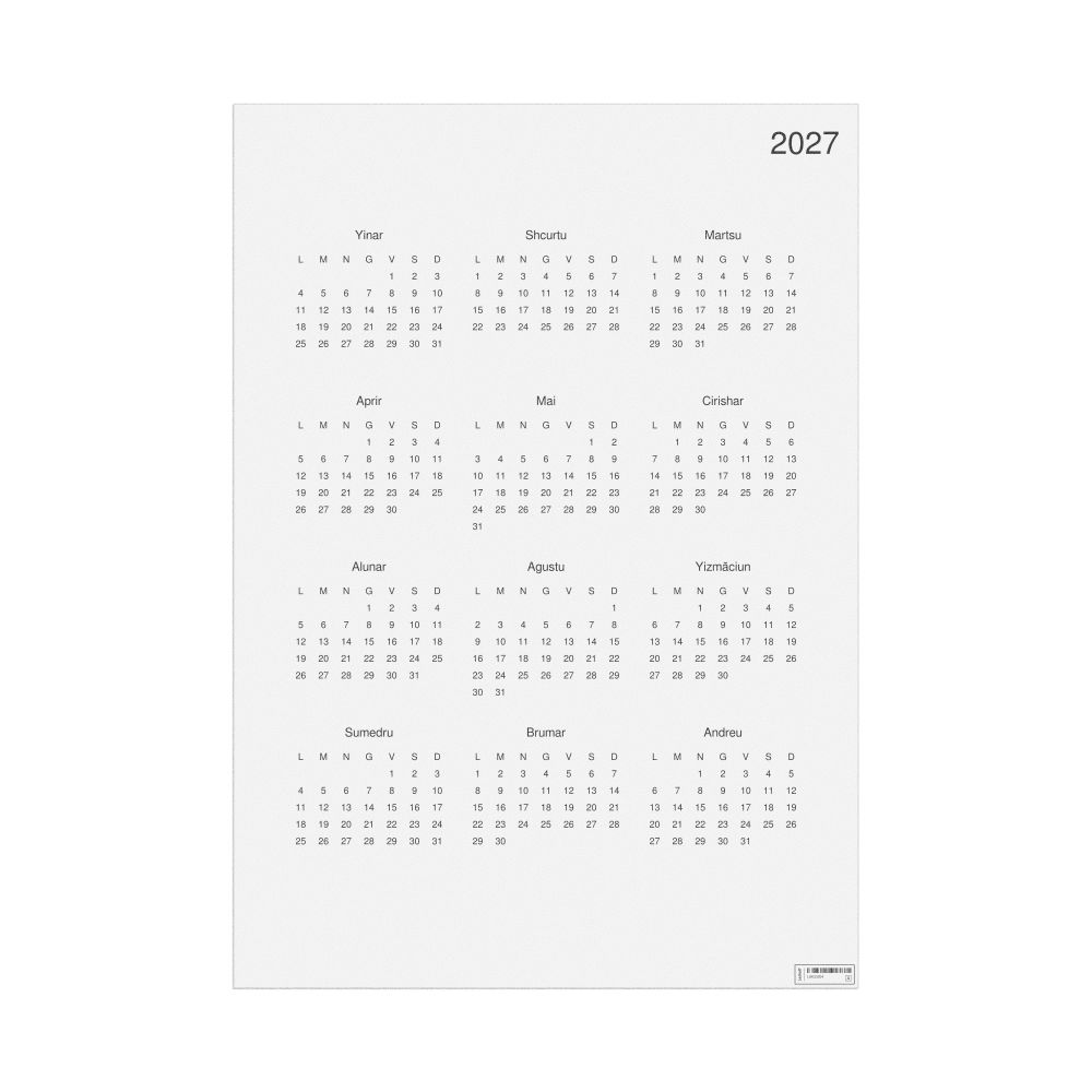 Leskoff 2027 Wall Calendar, Aromanian-Labeled, Monday-Start Layout, Poster / Wall Print, 23.4 x 33.1 in (59.4 x 84.1 cm), image 1 of 1