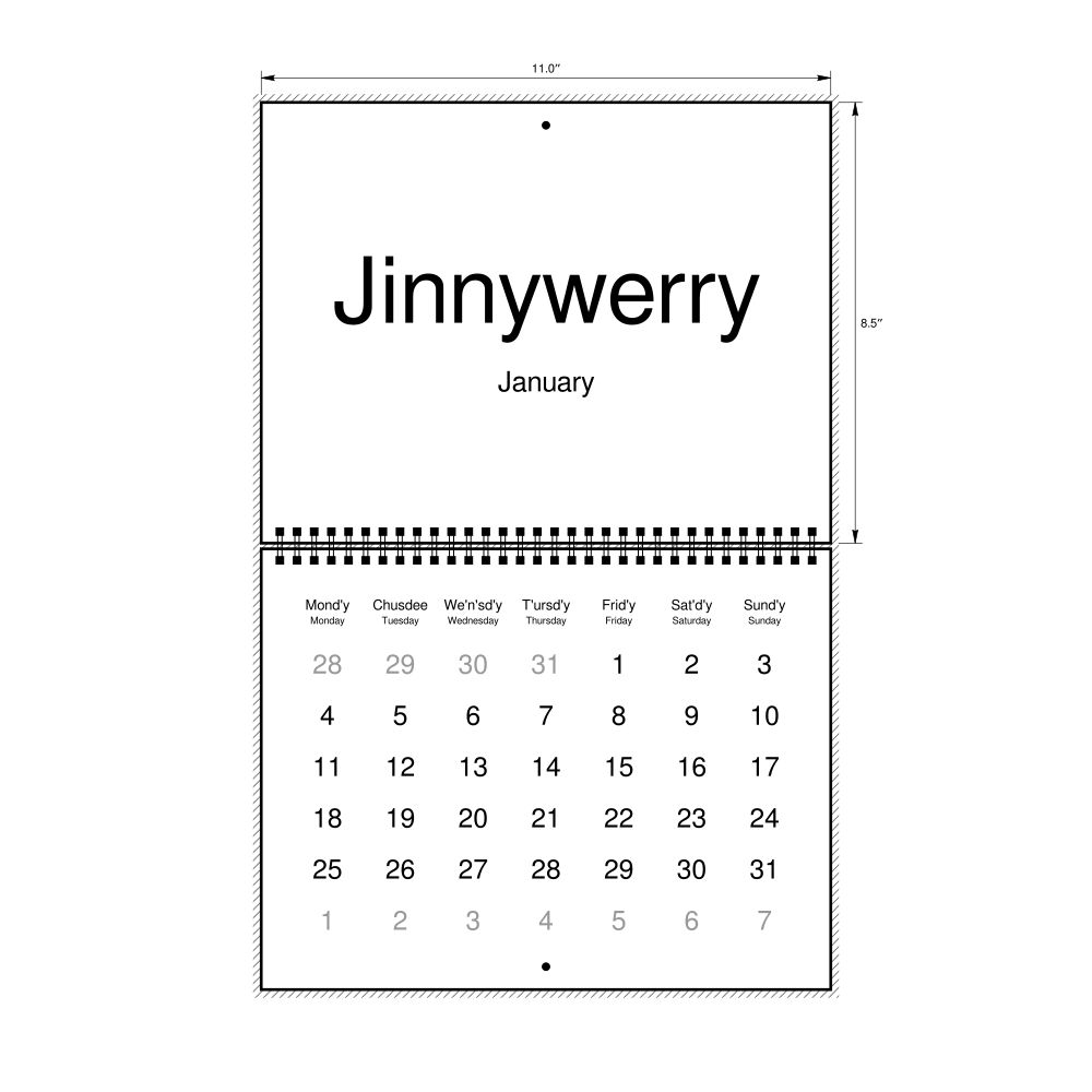 2027 Wall CalendarGullah/English-Labeled, Monday-Start Layout, Wire-Bound, 11 x 8.5 in (27.9 x 21.6 cm)
