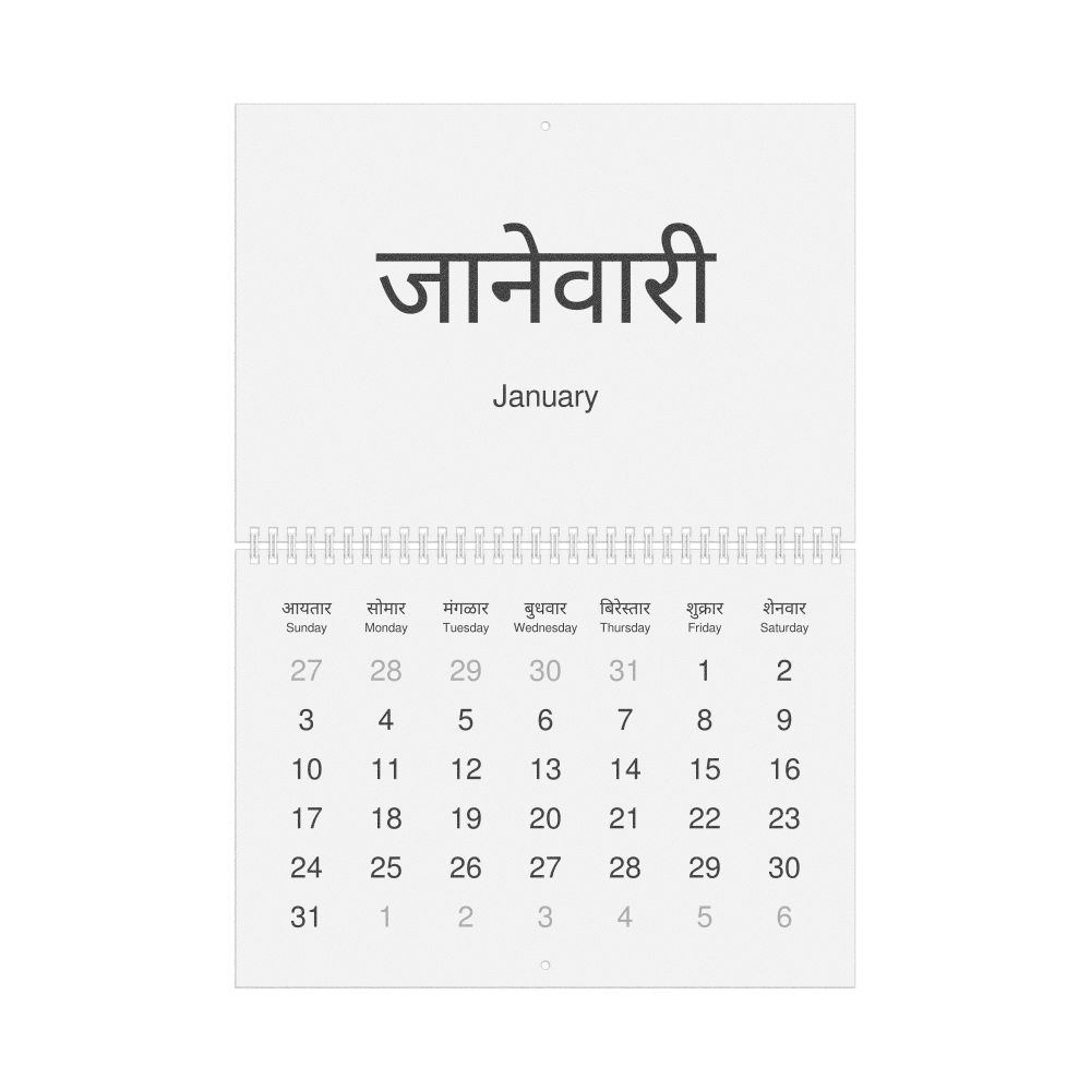 2026 Wall Calendar, Konkani-Labeled, Sunday-Start Layout, Wire-Bound, 11.7 x 8.3 in (29.7 x 21.0 cm)